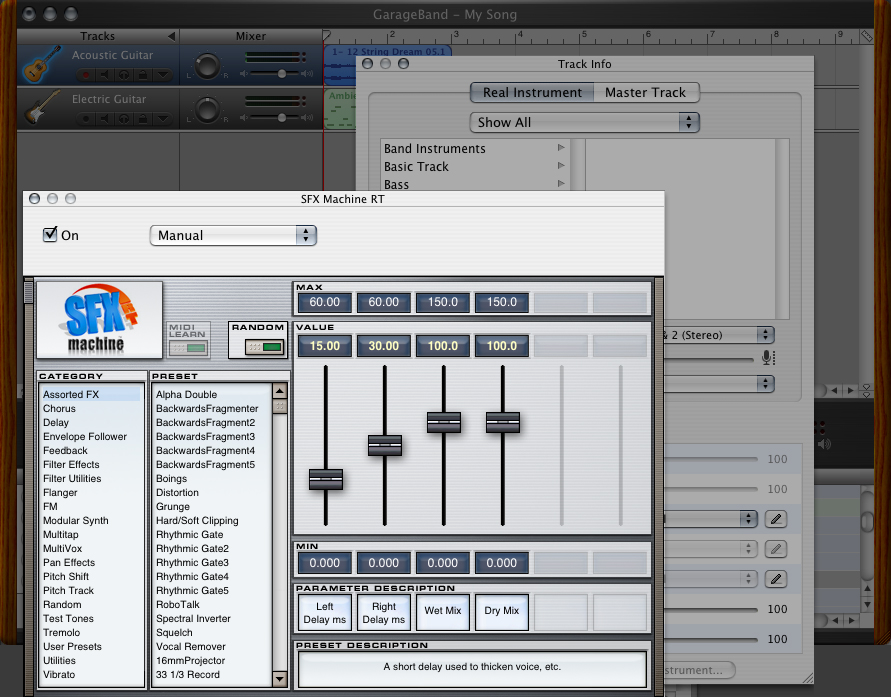 - In the resulting pop-up window, scroll all the way past "GarageBand Effects" and look for "SFX Machine" (or other desired Audio Unit plug-in) in the "Audio Unit Effects" section.